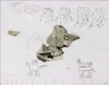 Our school had collected school supplies to send to students in affected schools, and Reid had brought in a bag of items to donate. Her artwork was “a bird’s eye view”(as she described it) of the people stuck in the tornado. She used the newspaper to show “stuff that got destroyed…and if it is all destroyed, it is really sad.” She identified A Child’s Garden (Foreman, 2009) as a story that her artwork reminded her of because in that story, the destroyed ruins where the boy lived were in muted, drab colors as was her newspaper.
