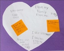 Maya’s heart shows the development of her sense of self throughout the year. She includes such descriptions of herself with traits like “strong, loving, cool, confident, brave, awesome, and important” (see Figures 7a & 7b).