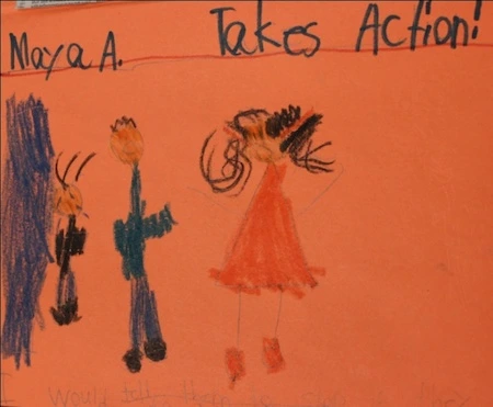 Students chose a variety of different ways to take action on their posters. The confident, brave Maya would stand up to the bullies and tell them to stop (see Figure 9)