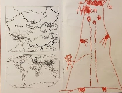 Figure 6. Anna’s China map and drawing of Mt. Everest.