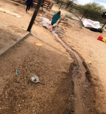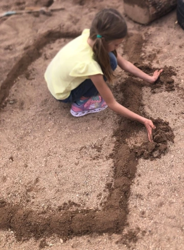 On a warm day in January, students stumbled upon a new kind of harmony. While spending time on the back desert playground, Garhett, a second grader, asked if he could turn on the water. He and Michael, another second-grader, began digging a waterway and discussing plans to build a dam. Within a short amount of time, the entire class was drawn into the project (see Figure 1). The students found shovels and began digging and moving dirt. When it was time to go inside, they eagerly asked to return the following day to continue what they had begun.