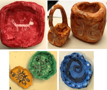 Figure 7. Other students’ pinch pots with Hohokam designs.