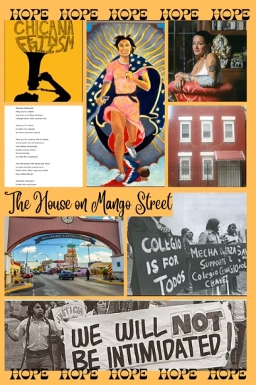 The chapters are no longer than three pages and do not offer a continuous storyline. Still, the stories do illustrate Esperanza's perception of the world based on the judgments she makes about each person she encounters. I included images pertaining to Chicano protests, especially feminism and education because Esperanza's mother wanted her to be an educated woman. I also found an image of the actual house on Mango Street and the Little Village, a neighborhood important to the Mexican community in Chicago, the city where the book takes place. I also added images of Sandra and some of her poetry. I really liked the book but it was very sad when I began to reflect on the meaning of each story in relation to Chicano struggles."