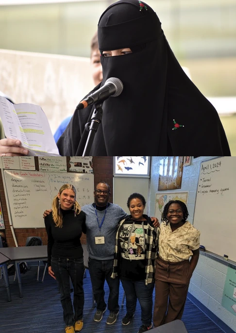I strive to celebrate differences and encourage the strength of students to center curriculum and dialogue around their cultural perspectives and emerging adult identities, so I utilized targeted culturally diverse books to engage students in sharing their voices through literary discussions, fostering a stronger classroom community. My pedagogy normalized multilingualism by drawing on students' linguistic resources to translate and create meaning. Various interdisciplinary lessons utilized scaffolded entry points and project-based learning to explore a decolonized curriculum that centered on often marginalized students, including literature by Malala Yousafzai (I Am Malala, 2014), Trevor Noah (Born a Crime, 2019), Jerry Craft (New Kid, 2019), and Huda Fahmy (Yes, I'm Hot in This! 2018), as well as biographies of Wangari Maathai (Purtill, 2023; Winter, 2018).