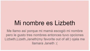 In my practice, I embrace the culture of students, most of whom are of Mexican heritage. I am part Mexican and connect on a personal and professional level. We all practice the same rituals, eat the same food, and have an ofrenda in our homes. We can explore these topics together. Students feel a strong sense of belonging in the classroom and connect to the literature I have chosen because the books represent their Latinx cultures. They see themselves in books. We started the year with Alma and How She Got Her Name by Juana Martinez Neal (2018) and explored where they got their names, why their family selected their names and whether they like their names. There is one example from a student named Lizbeth.