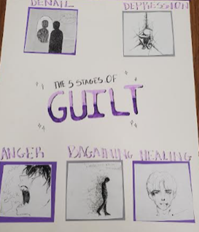 Julie created a poster to reflect Amir’s development over the course of the book when she realized during the reading that Amir’s character went through the five stages of guilt. She gave a presentation in which she explained what he was going through at each stage and ended with a positive note about his brighter future ahead.